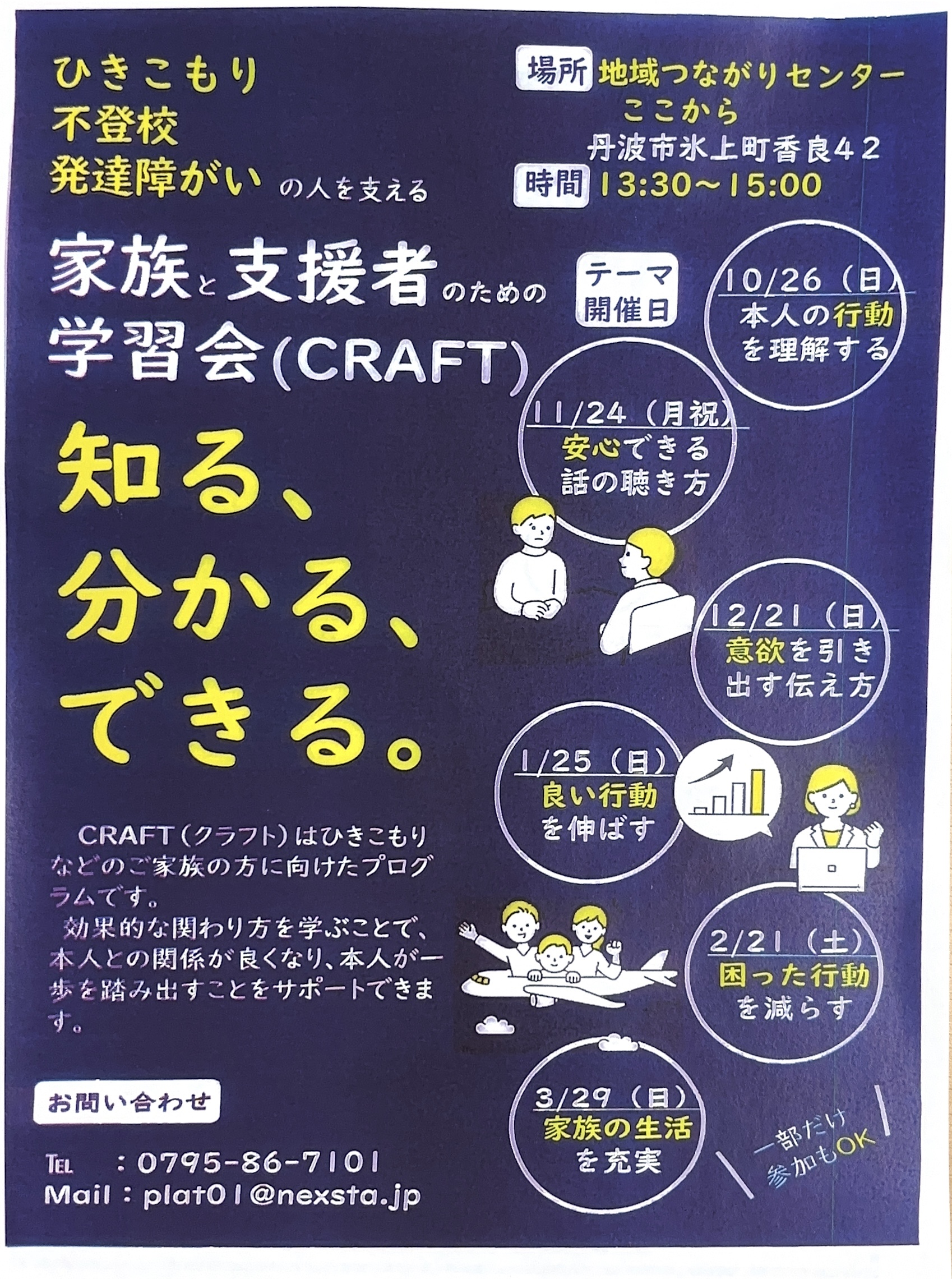CRAFTプログラムを活用した、関わり方、接し方を一緒に学ぶ学習会を開催します