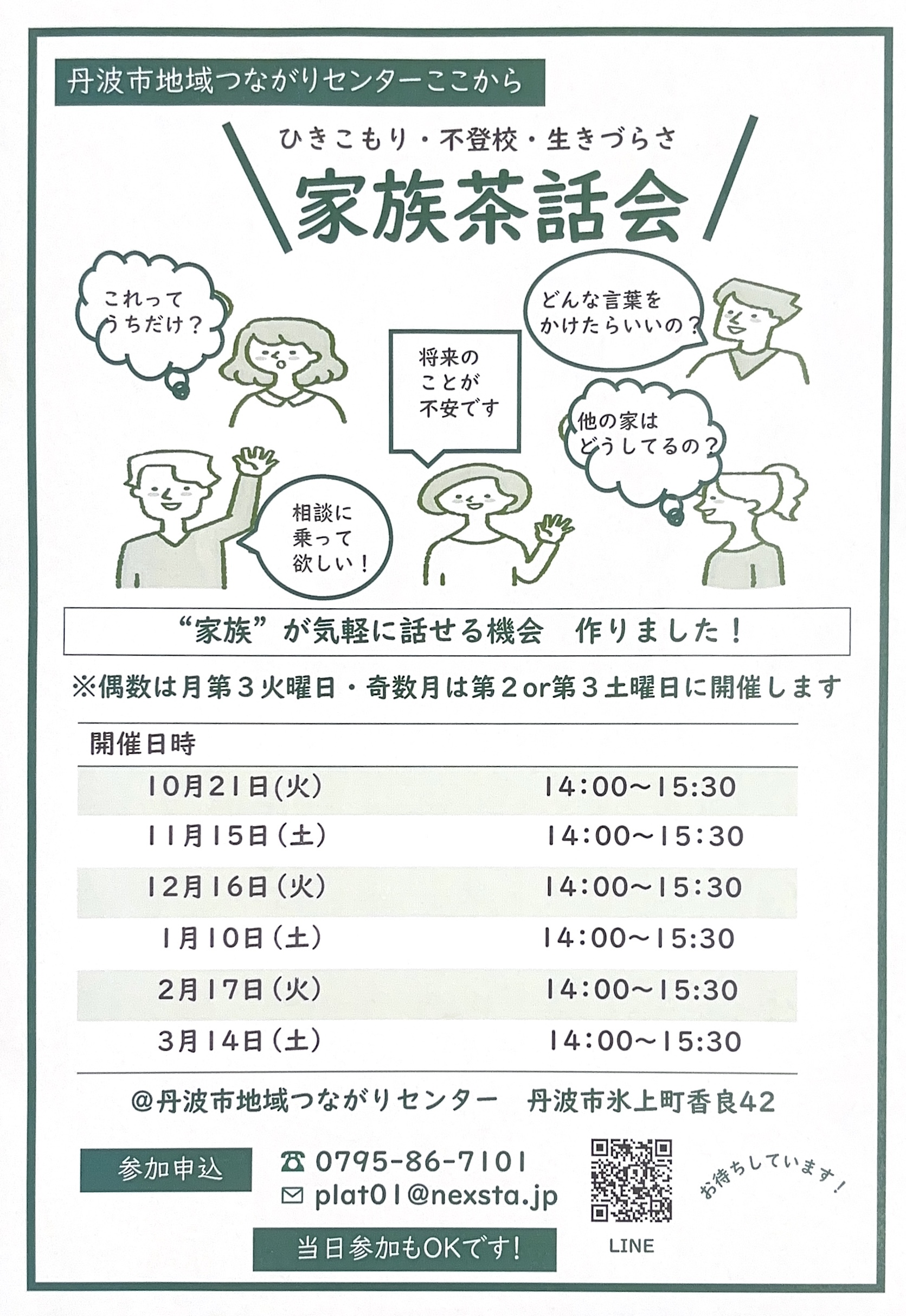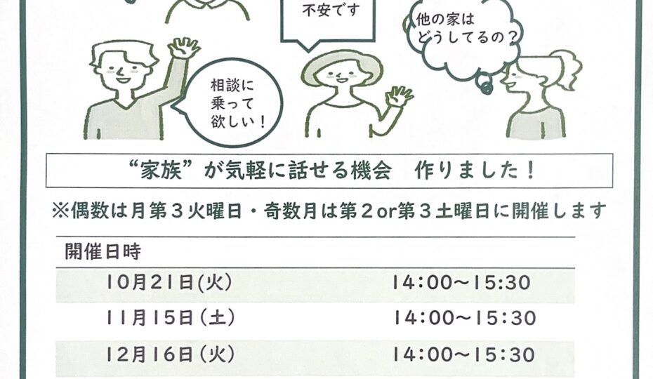令和7年度下半期の家族会・家族茶話会のお知らせです